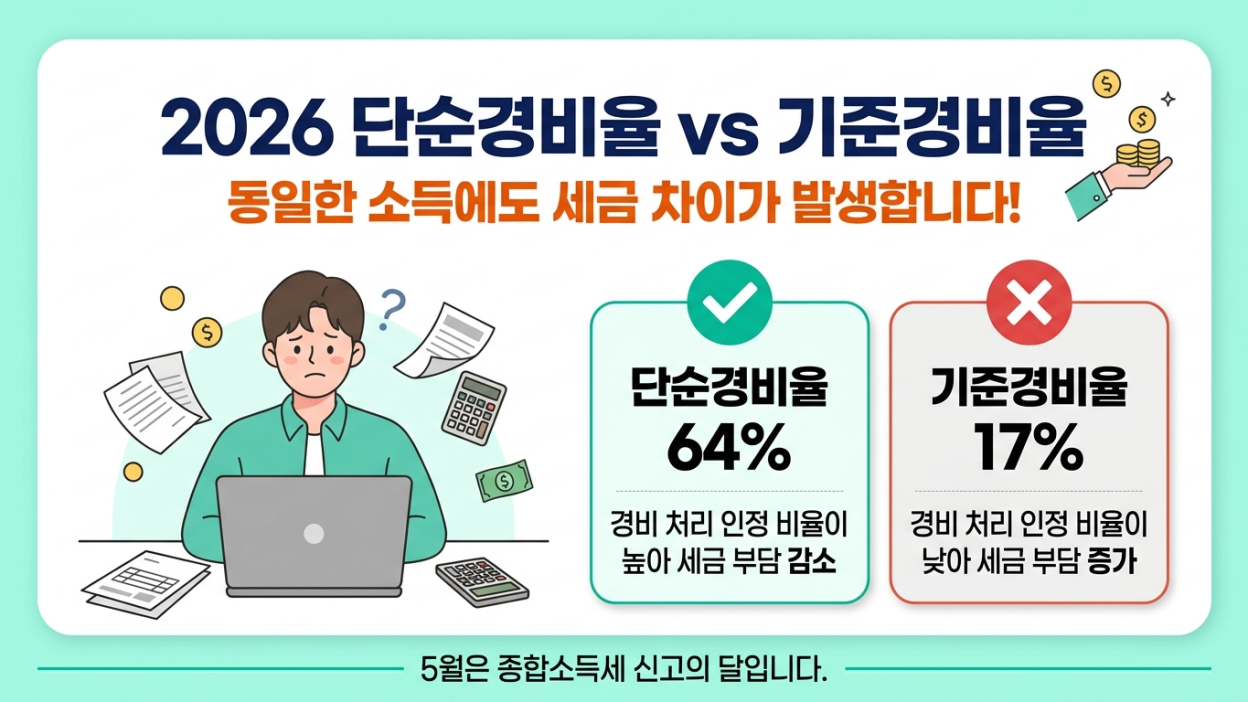 이 글에서는 단순경비율과 기준경비율의 핵심 차이, 2026년 변경 사항, 그리고 실전 절세 전략 5가지를 한 번에 정리합니다.